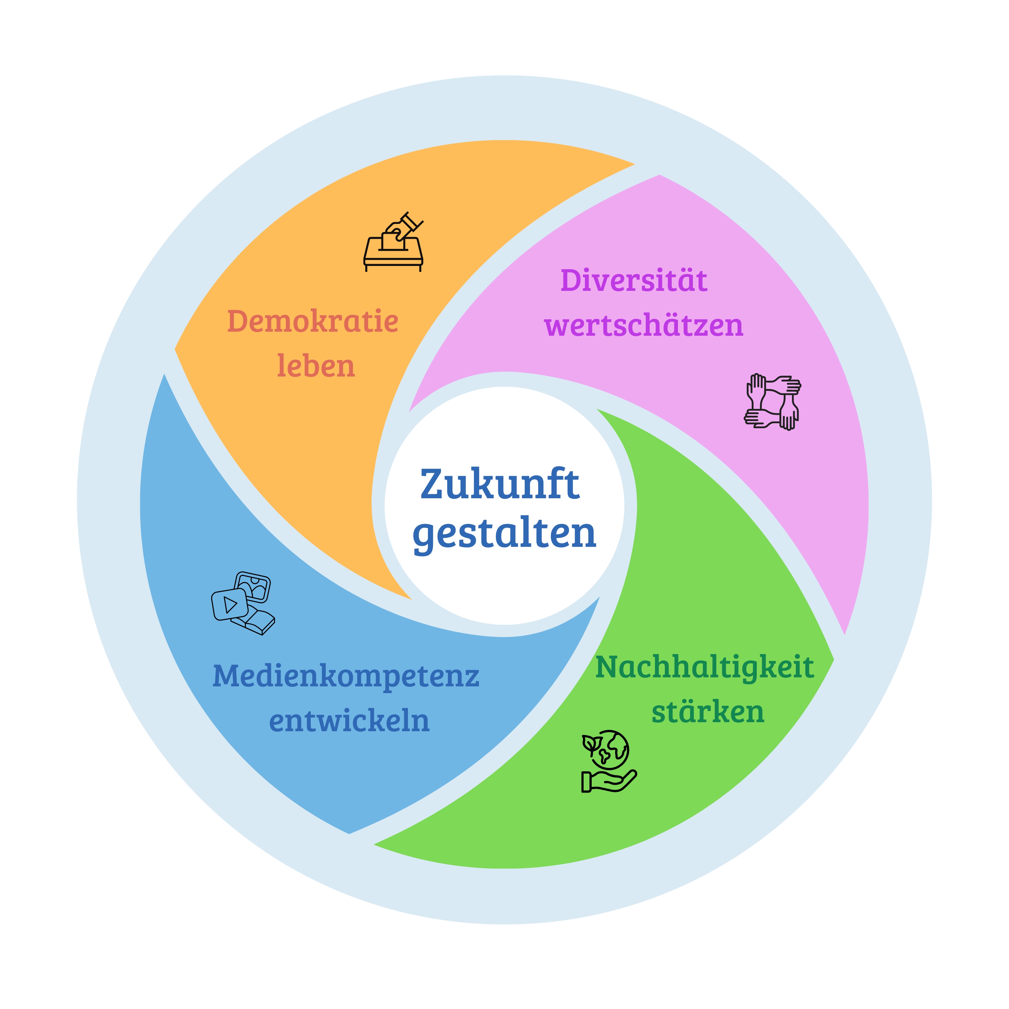 Das Seminar Heilbronn hat zum Thema „Zukunft gestalten“ analog zu den Leitperspektiven des Bildungsplans 2016 vier Zukunftsthemen bestimmt, mit denen Referendarinnen und Referendare sich im Vorbereitungsdienst vertieft auseinandersetzen können: