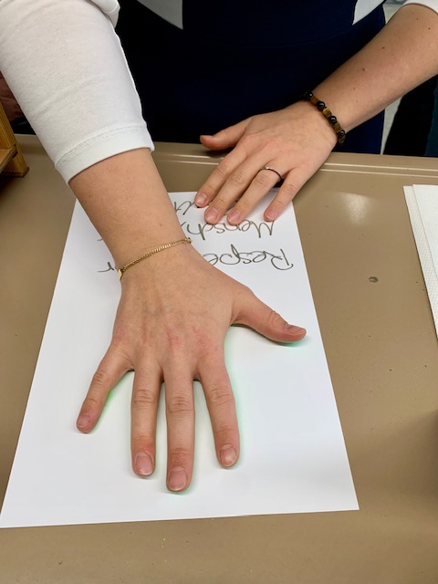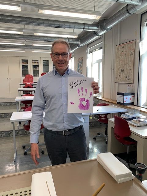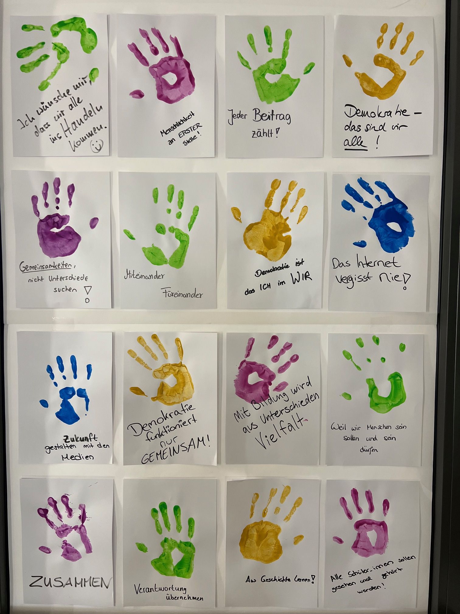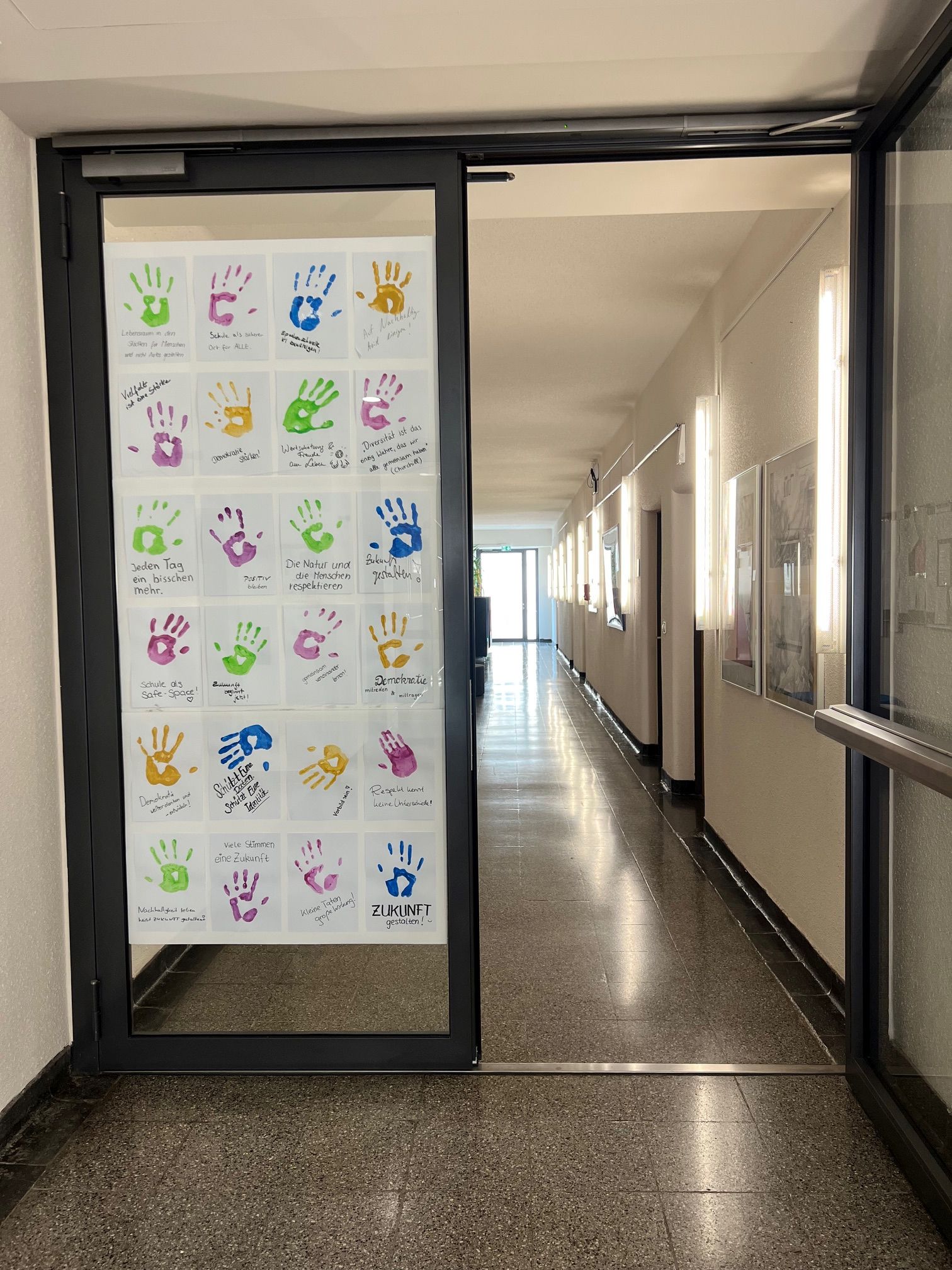 Der Kurs 2026 bekennt Farbe für die Zukunft: Wir HANDeln. Alle Referendarinnen haben einen Handabdruck und einen Impuls für das Zukunftsthema hinterlassen, das ihnen am meisten am Herzen liegt. Die Handabdrücke sind im Seminar ausgehängt.