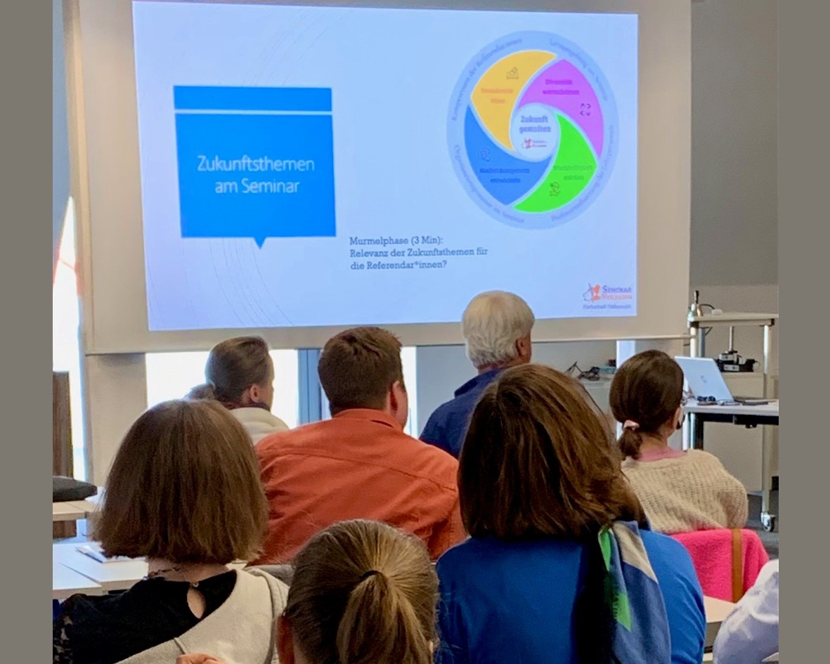 - Das Seminar Heilbronn bestimmt jedes Jahr ein aktuelles Jahresthema als Schwerpunkt. Dies macht die Mentorinnen- und Mentorenqualifizierung auch für erfahrene und schon zertifizierte ausbildende Lehrkräfte attraktiv.